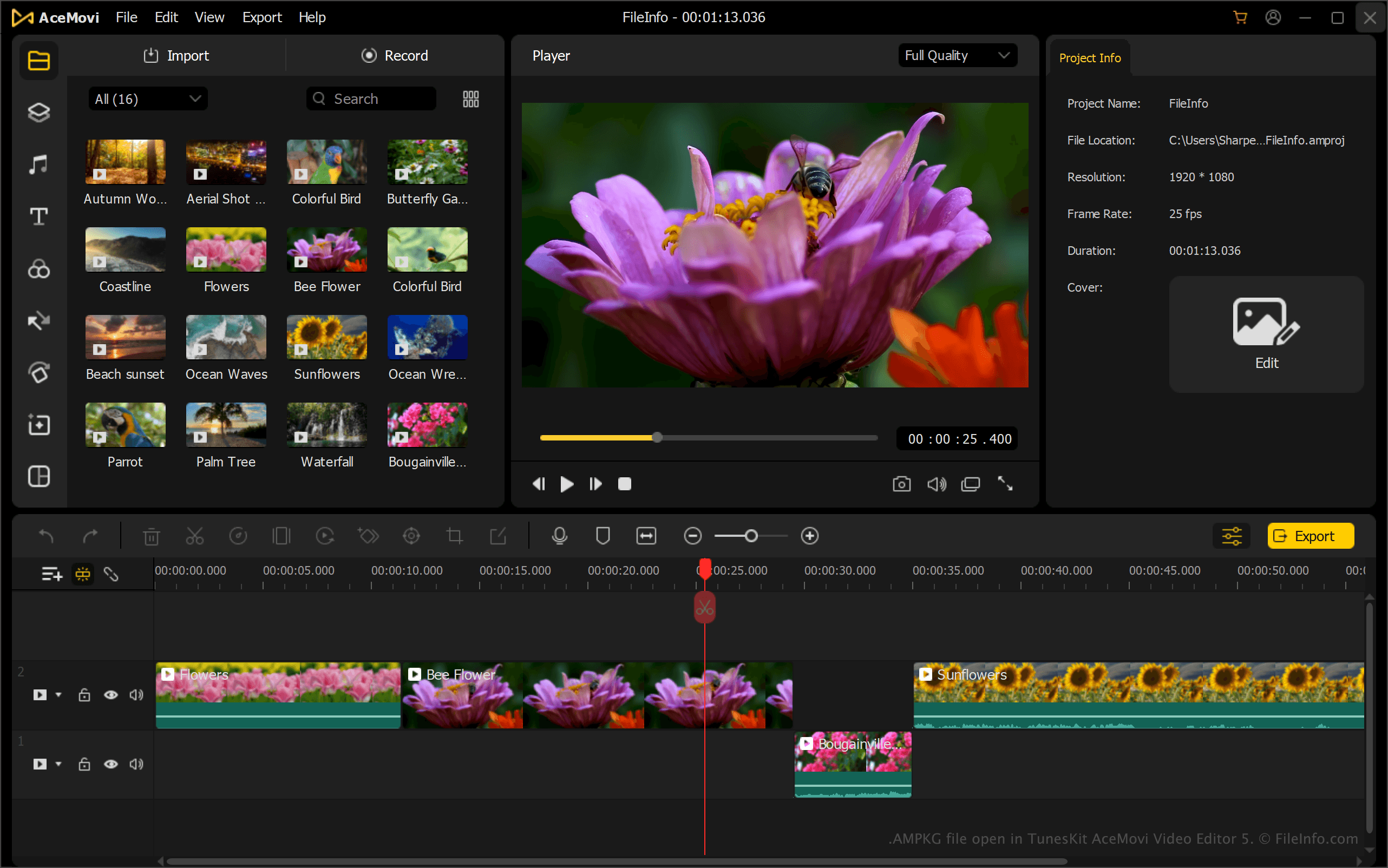 When opened, AceMovi extracts and loads the project along with its included media so you can continue editing. If needed, you can also export the contents back into a standard project file for further work.