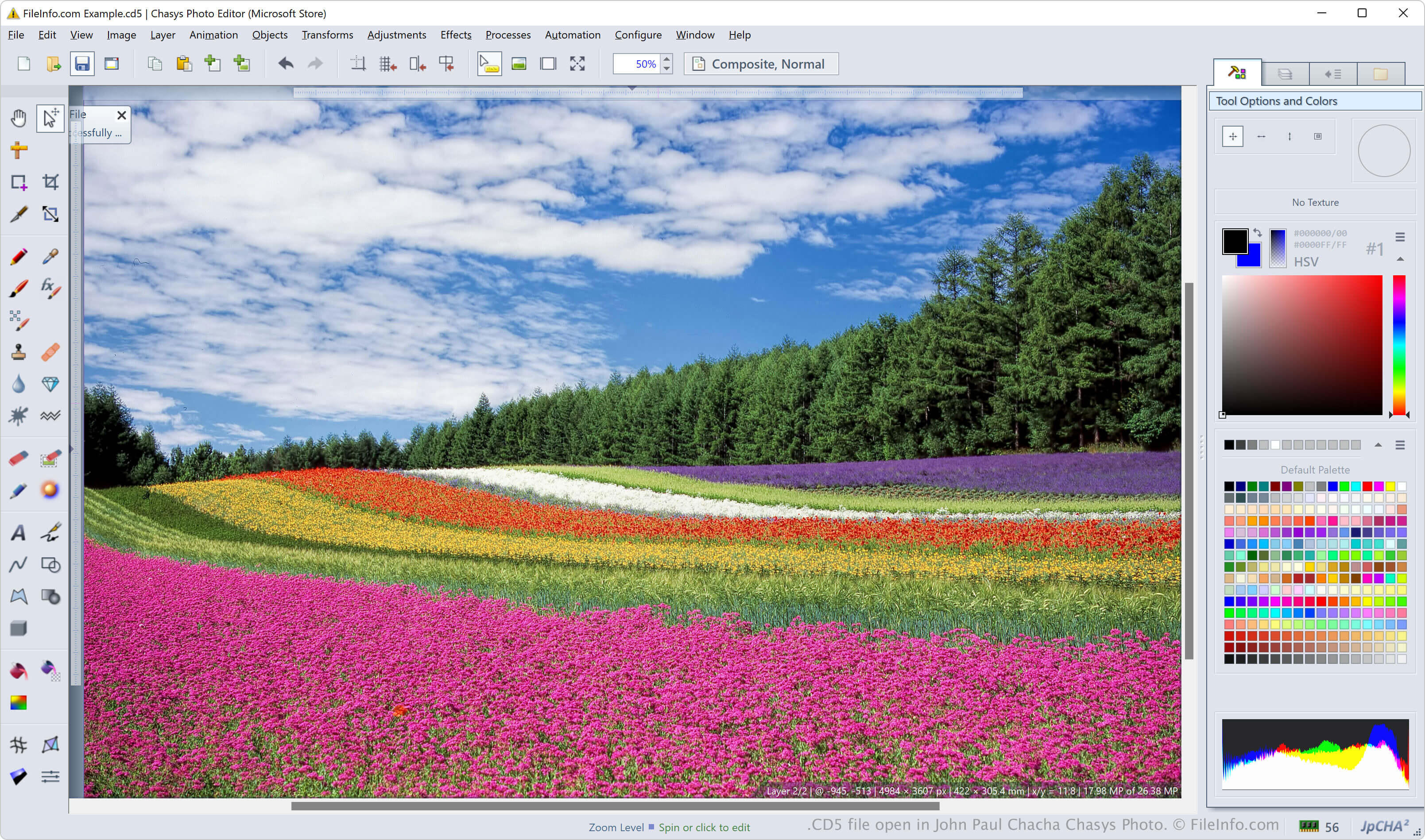 Chasys Photo is a free image editing suite for Windows that includes tools for drawing, photo editing, image stacking, animation, and RAW photo processing. When a user saves their image as a project, the software creates a CD5 file to store its information.