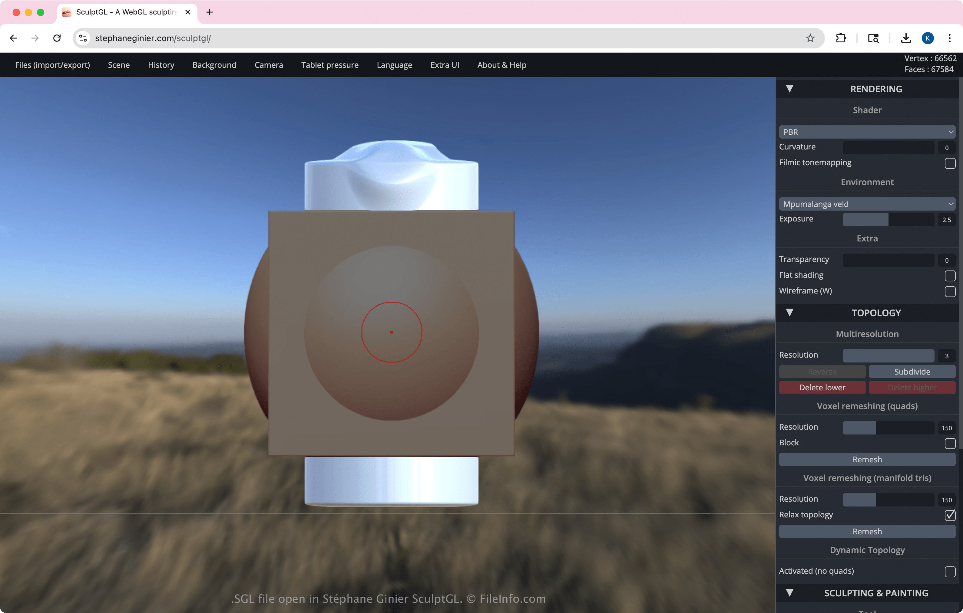 An SGL file is a 3D model file used by SculptGL, a browser-based digital sculpting application developed by Stéphane Ginier. It stores the geometry and sculpting data of a 3D model in the SculptGL (SGL) format, including the model's shape, vertex information, and other data needed to preserve the sculpted object. SGL files let users save models created with SculptGL and reopen them to continue editing.