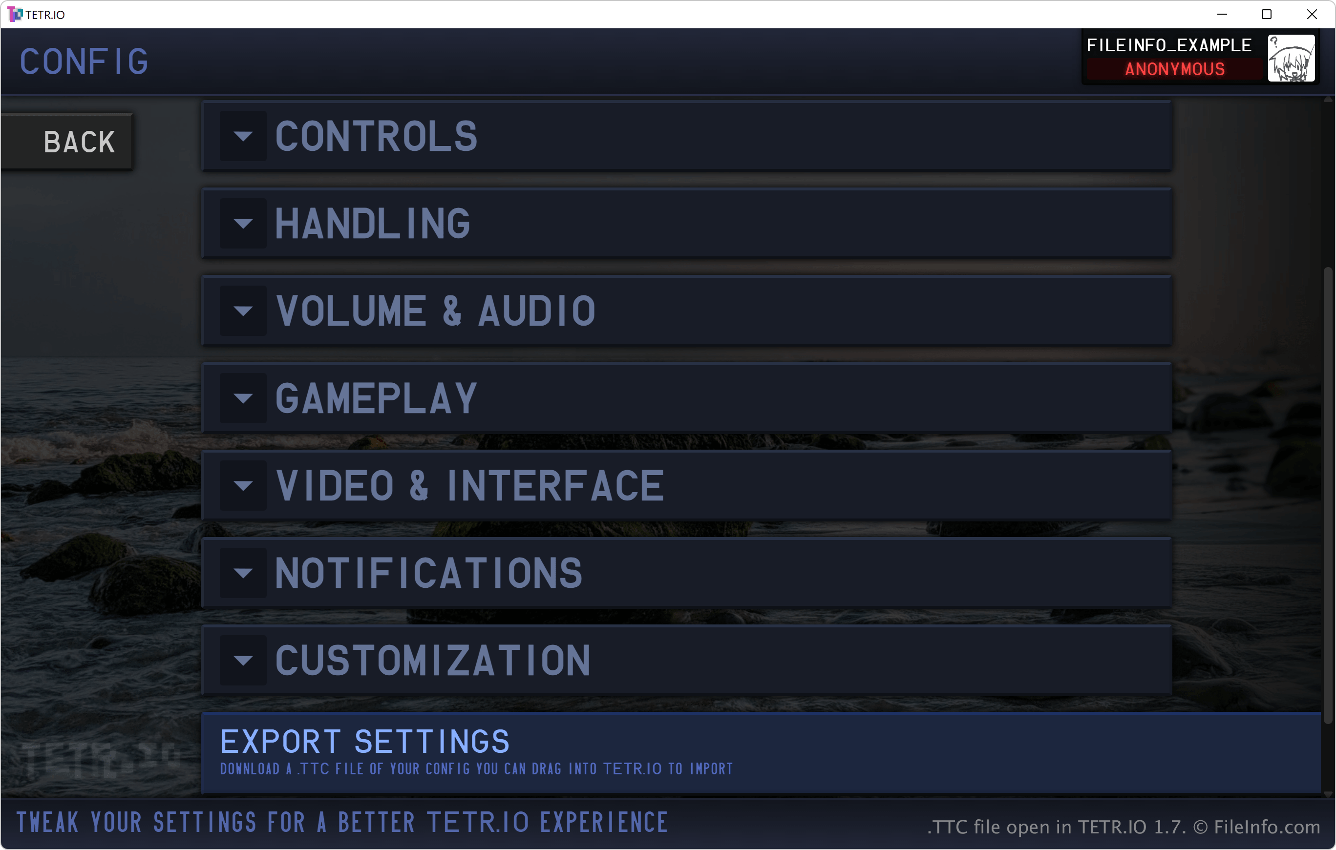 config.ttc - Default name given to TTC files exported from TETR.IO.